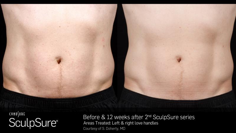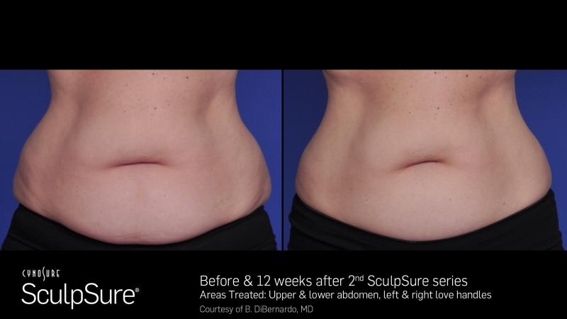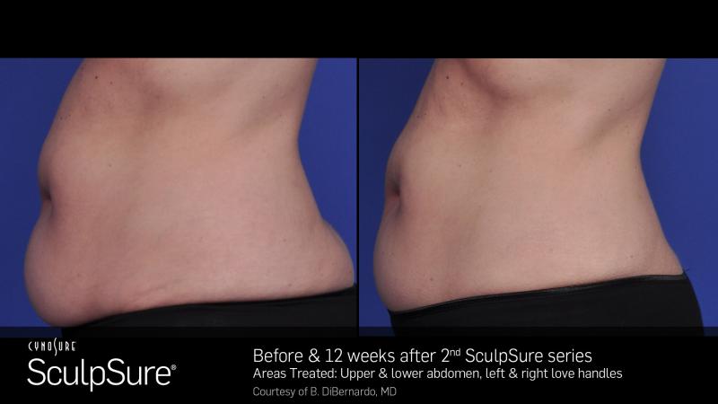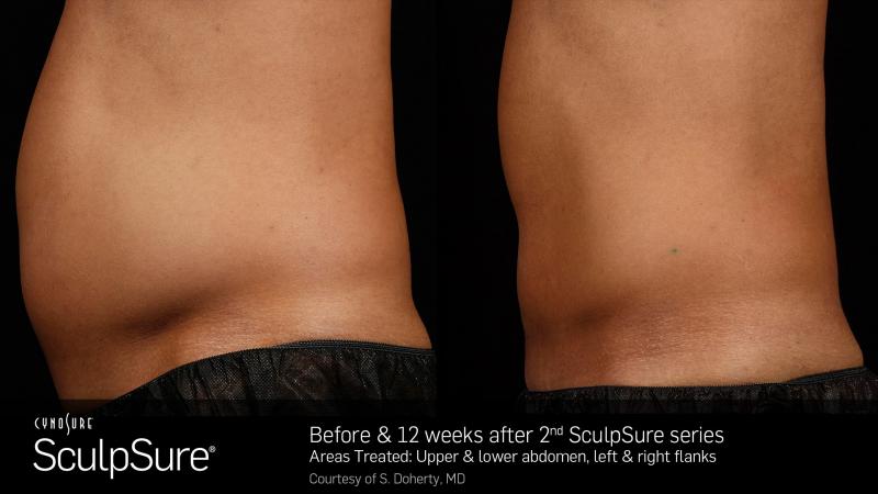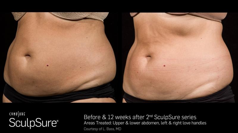 SculpSure’s non-surgical 25 minute procedure uses light-based technology to permanently destroy up to 24%1of treated fat in problem areas such as the abdomen and love handles. Over time, these damaged fat cells are naturally absorbed and removed from the body, with results seen as quickly as six weeks, and optimal results typically seen at 12 weeks.